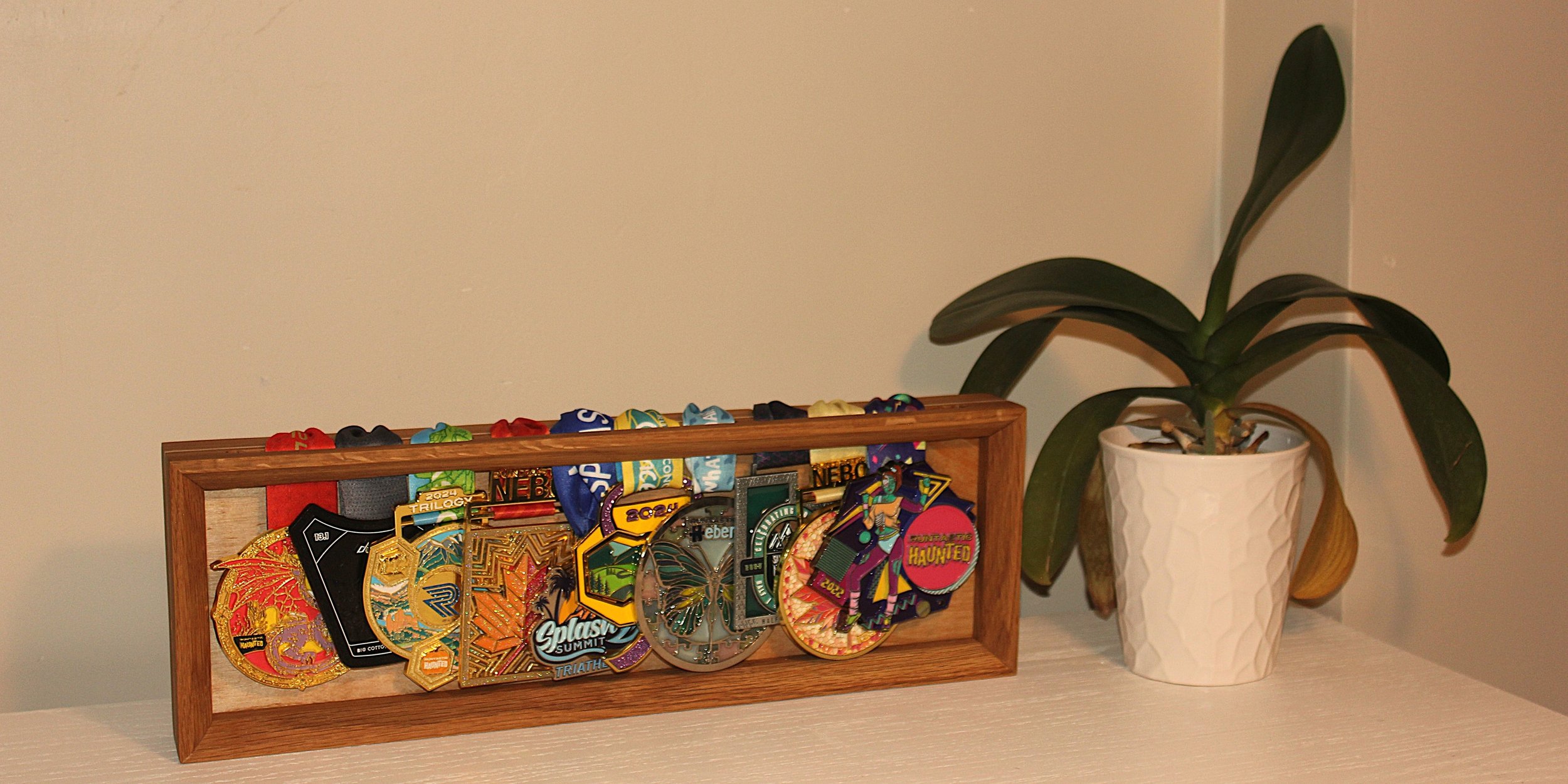 Justin started Medal Mounts out of his backyard wood shop in 2024. Being married to a casual runner, Justin noticed the race medals dangling over door knobs and thermostats or being forgotten in drawers.